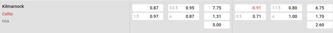 Tỷ lệ kèo Kilmarnock vs Celtic