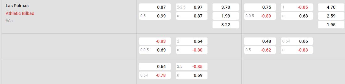 Soi kèo Châu Á Las Palmas vs Bilbao