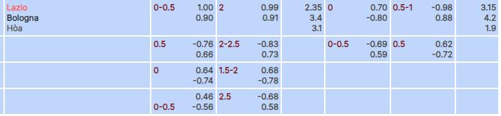 2 là tỷ lệ mà nhà cái bóng đá đưa ra cho kèo tài xỉu của trận này. Theo thống kê cho thấy, có 3 trong 5 trận gần nhất của Lazio đã nổ Tài. Thêm vào đó, những trận đấu của Bologna cũng thường nổ Tài. Minh chứng là, có 4 trong 5 trận gần nhất đã nổ Tài. Do đó, các chuyên gia bongdainfoz.net dự đoán, trận đấu này khả năng nổ Tài là khá cao.