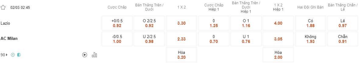 Soi kèo châu Á Lazio vs Milan