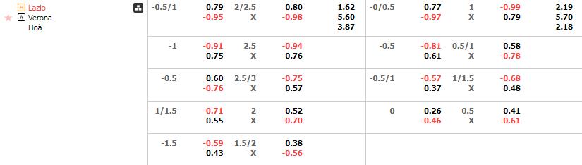 Với phong độ ổn định, Lazio thường nhập cuộc khá chủ động. Khi mà có 2/3 trận gần nhất, họ đã ghi bàn ngay trong hiệp 1. Trong khi đó, Verona lại đang chơi phòng ngự không tốt. Với việc có 3/5 trận gần nhất, họ để thủng lưới trong 45 phút đầu tiên. Do đó, cơ hội thắng kèo hiệp 1 trận này của Lazio vẫn là khả quan hơn.
