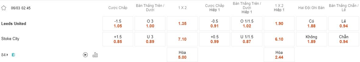 Soi kèo hiệp 1 Leeds vs Stoke