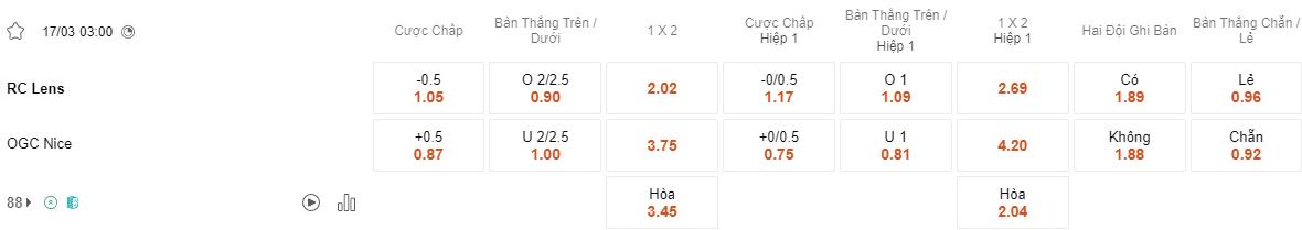 Soi kèo Lens vs Nice lúc 3h00 ngày 17/3/2024