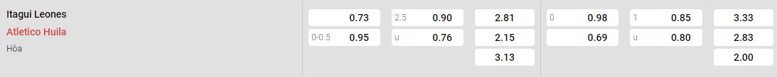 Tỷ lệ kèo Leones vs Huila