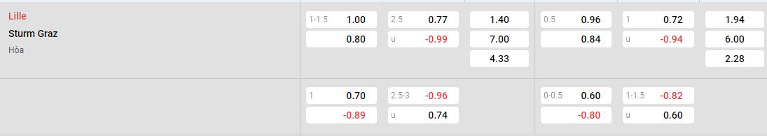 Soi kèo hiệp 1 Lille vs Sturm Graz