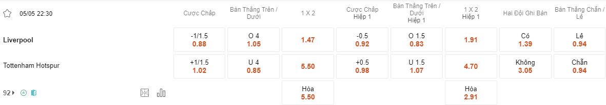 Soi kèo tài xỉu Liverpool vs Tottenham