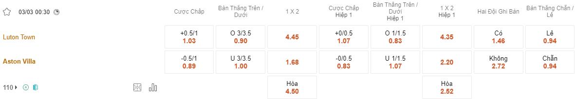 Soi kèo châu Á Luton vs Aston Villa