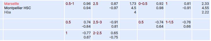 Soi kèo hiệp 1 Marseille vs Montpellier