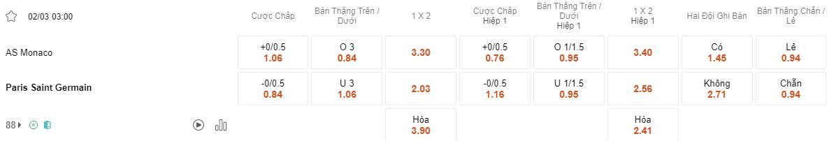 Đội bóng thủ đô đã thể hiện sức mạnh của mình với chuỗi trận bất bại kéo dài ở Ligue 1. Họ sẽ nhập cuộc với tinh thần cao sau chiến thắng ấn tượng. Monaco mặc dù có thể tạo ra sức ép ở một số thời điểm, nhưng họ thường gặp khó khăn khi đối mặt với các đối thủ mạnh trong hiệp đầu. Do đó, việc chọn PSG thắng kèo hiệp 1 có thể là một lựa chọn hợp lý trong trận đấu này.