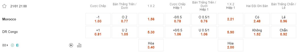Với lối chơi tấn công sắc nét, Morocco có khả năng kiểm soát trận đấu từ đầu và tạo ra những cơ hội nguy hiểm. Việc dẫn đầu tại hiệp 1 không chỉ thể hiện sự chắc chắn mà còn là cơ hội để họ giành ưu thế tinh thần và tạo đà cho phần còn lại của trận đấu. Trong khi Congo DR có thể thể hiện sự khó chịu và tấn công. Tuy nhiên, việc đối mặt với đội hình mạnh mẽ và hàng phòng ngự chắc chắn của Morocco có thể đưa họ vào thế khó khăn. Điều này tạo ra một cơ hội lớn cho Morocco để kiểm soát trận đấu từ những phút đầu.