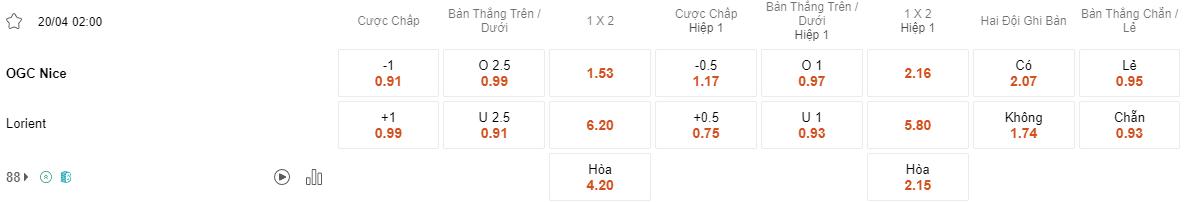 Nice đã thi đấu tương đối tốt khi đối đầu với Lorient tại sân nhà khi không thua trong 6 trận gần nhất và giành được 14 điểm trong số đó. Trong khi đó, Lorient đã gặp khó khăn khi thi đấu xa nhà. Với sự hỗ trợ từ các CĐV và sự tự tin từ lịch sử đối đầu gần đây, Nice sẽ có ưu thế trong hiệp 1 của trận đấu này.