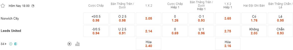 Soi kèo hiệp 1 Norwich vs Leeds