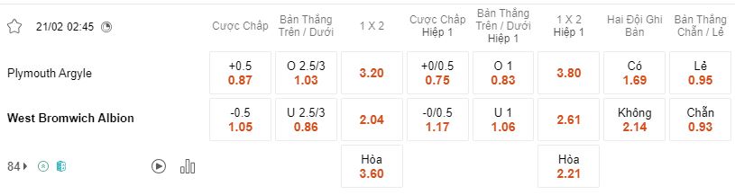 Soi kèo châu Á Plymouth vs West Brom