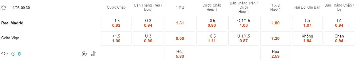 Soi kèo hiệp 1 Real Madrid vs Celta Vigo