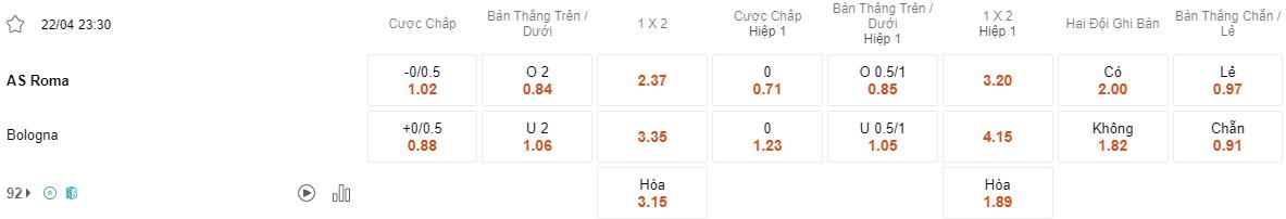 Trong khi đó, dưới sự dẫn dắt của HLV Thiago Motta, Bologna đã cho thấy sự cứng cỏi trong phòng ngự khi giữ sạch lưới trong 4 trận gần nhất tại Serie A. Dù chỉ có 4 chiến thắng trên sân khách, Bologna vẫn là một đối thủ khó chịu và sẽ không dễ dàng để Roma có được chiến thắng. Tuy nhiên, cửa cược của họ đã khiến bet thủ ôm hận trong 2 lần mở kèo gần đây và không phải là lựa chọn sáng giá lúc này.