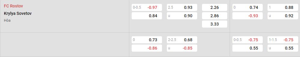 Soi kèo Châu Á Rostov vs Krylya Sovetov