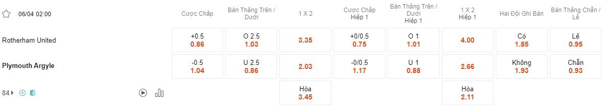 Soi kèo hiệp 1 Rotherham vs Plymouth