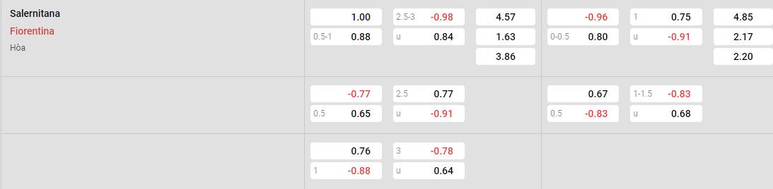 Soi kèo Châu Á Salernitana vs Fiorentina