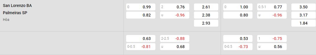 Soi kèo Châu Á San Lorenzo vs Palmeiras
