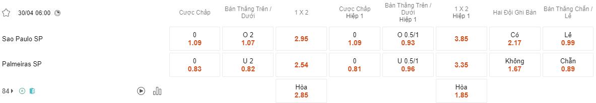 Tỷ lệ kèo Sao Paulo vs Palmeiras