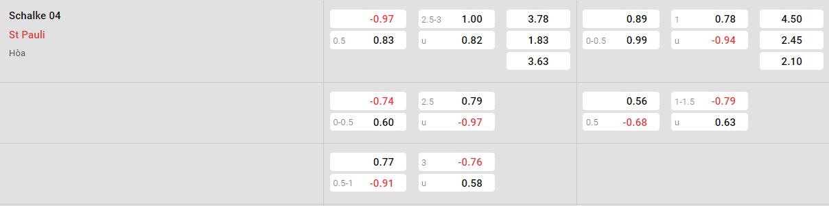 Trong khi đó, Schalke đang có phong độ thi đấu không tốt trong thời gian gần đây. Theo thống kê cho thấy, sau 5 trận ra quân gần nhất, họ đã phải nhận 3 thất bại. Được chơi trên sân nhà, tuy nhiên, phải tiếp đón các vị khách St Pauli, đây thực sự là một thử thách khó khăn. Do đó, các chuyên gia đang đánh giá cao St Pauli hơn trong trận kèo này.