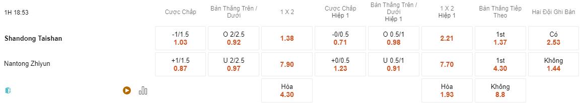 Soi kèo hiệp 1 Shandong Taishan vs Nantong Zhiyun