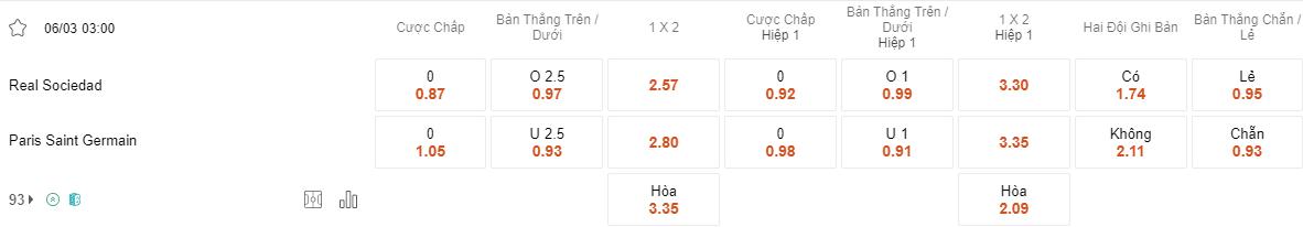 Sociedad sẽ cần một màn lội ngược dòng ấn tượng trước ông lớn PSG để có cơ hội tiến vào vòng tiếp theo của giải đấu. Soi kèo Sociedad vs PSG.