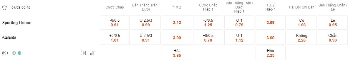 Soi kèo châu Á Sporting Lisbon vs Atalanta