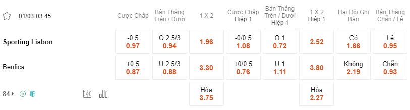 Soi kèo Sporting Lisbon vs Benfica lúc 3h45 ngày 1/3/2024