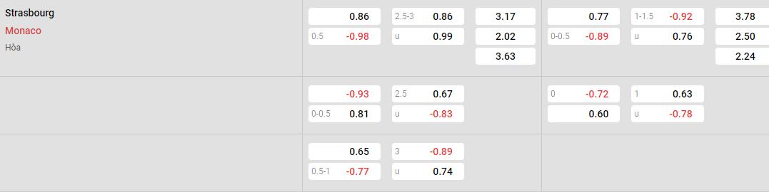 Soi kèo Châu Á Strasbourg vs Monaco