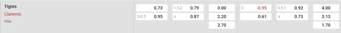 Llaneros với phong độ thi đấu ổn định, họ đang nhập cuộc khá tự tin. Khi mà có 3/4 trận gần nhất, họ đã ghi bàn trong hiệp 1. Tuy nhiên, Tigres lại đang chơi phòng ngự chắc chắn. Với việc họ không nhận bàn thua trong hiệp 1 ở 4 lần ra quân gần nhất. Do đó, khả năng cao sẽ không có bàn thắng nào xuất hiện ở 45 phút đầu tiên.