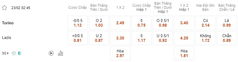 Cả hai đội đều có lối chơi chú trọng vào phòng ngự, đặc biệt là khi cả hai đều có thành tích phòng thủ tốt trong thời gian gần đây. Torino đã có 12 trận giữ sạch lưới ở Serie A mùa này, trong khi Lazio cũng không kém cạnh với hàng phòng ngự được cải thiện. Với những yếu tố này, khả năng trận đấu có ít bàn thắng được ghi là khá cao, làm tăng cơ hội cho kèo Xỉu. Theo thống kê từ Bongdainfoz.net, 6 lần đụng độ gần nhất giữa Torino vs Lazio đều không có quá 2 bàn được ghi.