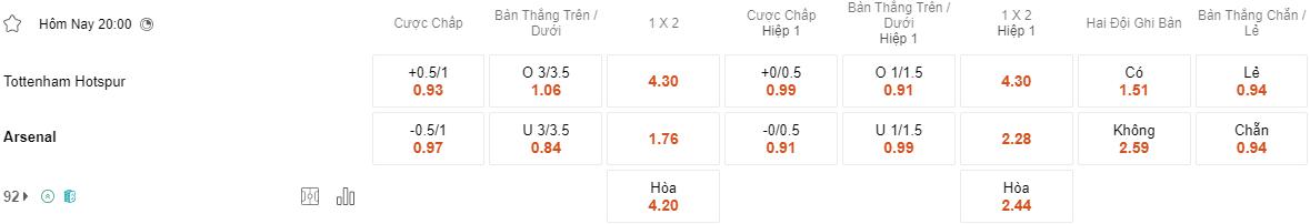 Soi kèo hiệp 1 Tottenham vs Arsenal