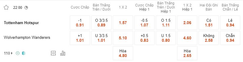 Soi kèo hiệp 1 Tottenham vs Wolves