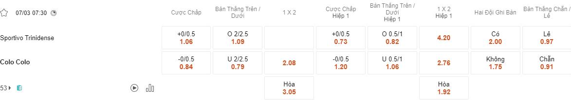 Soi kèo hiệp 1 Trinidense vs Colo Colo
