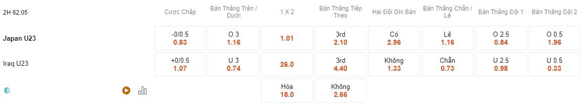 Soi kèo hiệp 1 U23 Nhật Bản vs U23 Iraq