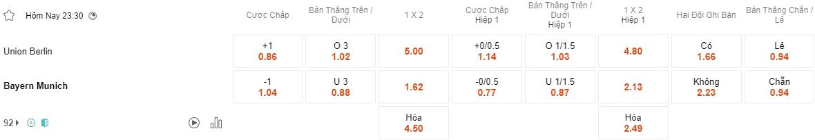 Soi kèo châu Á Union Berlin vs Bayern