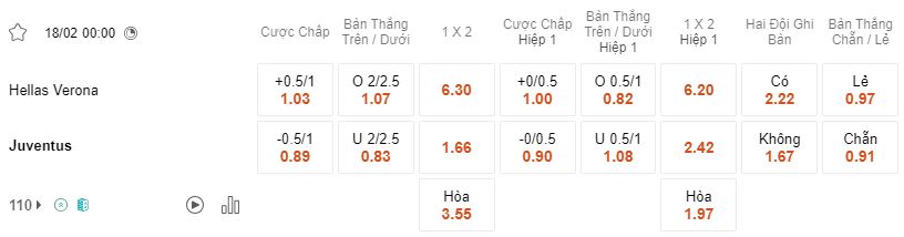 Soi kèo châu Á Verona vs Juventus
