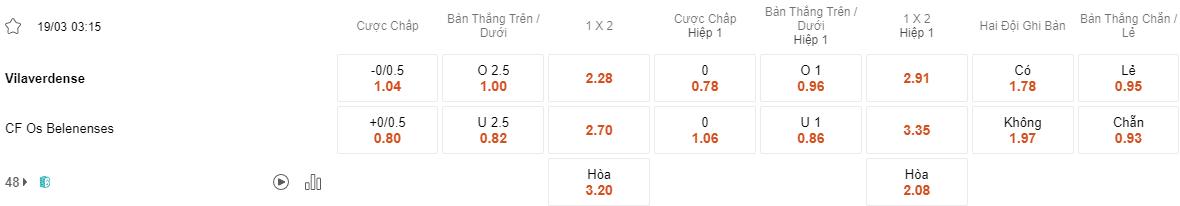 Soi kèo châu Á Vilaverdense vs Belenenses
