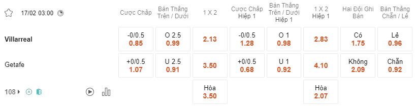 Soi kèo hiệp 1 Villarreal vs Getafe
