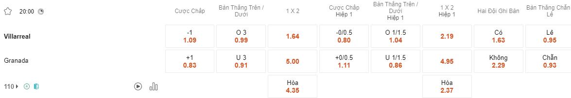 Tỷ lệ kèo Villarreal vs Granada