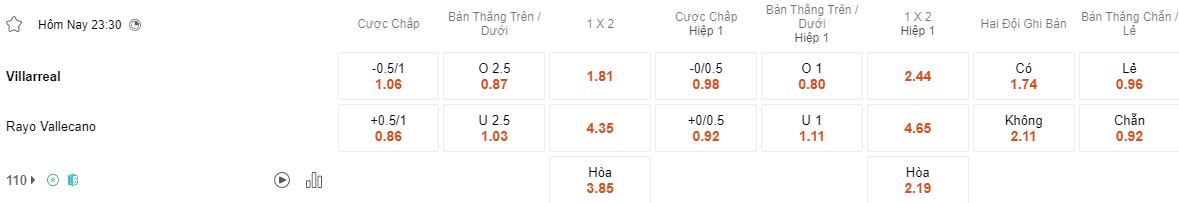 Soi kèo hiệp 1 Villarreal vs Vallecano