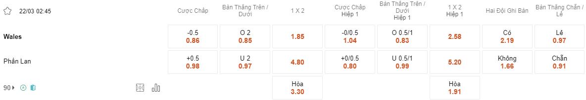 Soi kèo hiệp 1 Wales vs Phần Lan