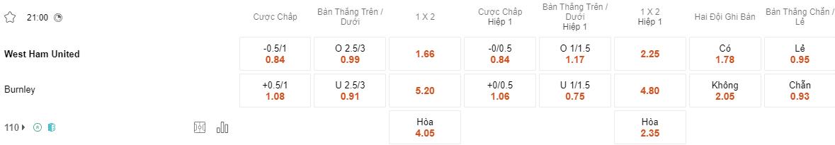 Soi kèo hiệp 1 West Ham vs Burnley