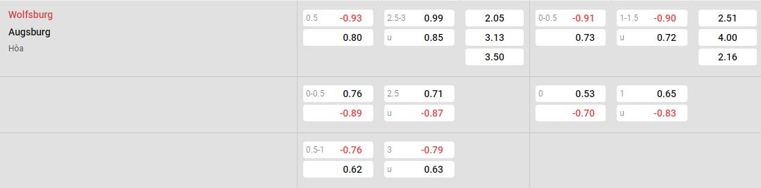 Soi kèo Châu Á Wolfsburg vs Augsburg