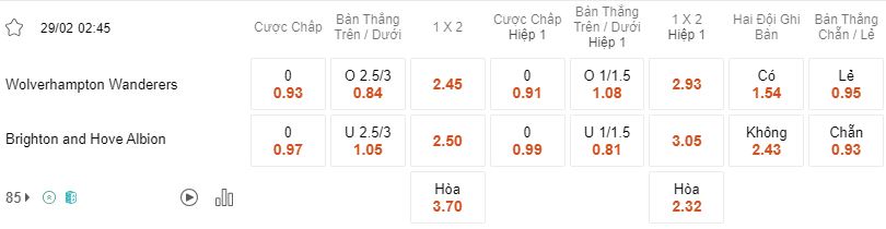 Với sự tự tin và sức mạnh của mình, Brighton có thể là ứng cử viên sáng giá để giành chiến thắng trong trận đấu này. Sự hiệu quả trong việc ghi bàn cùng với phong độ ấn tượng tại FA Cup của Brighton có thể khiến cho Wolves gặp nhiều khó khăn. Do đó, lựa chọn Brighton thắng kèo có thể là một lựa chọn hợp lý cho trận đấu này.