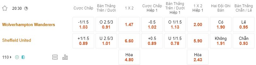 Soi kèo hiệp 1 Wolves vs Sheffield United
