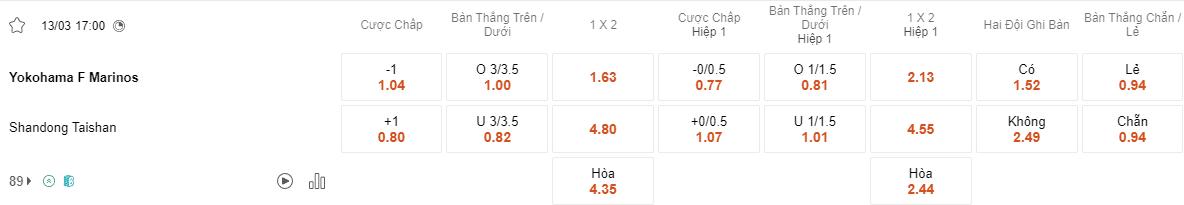 Soi kèo hiệp 1 Yokohama Marinos vs Shandong Taishan