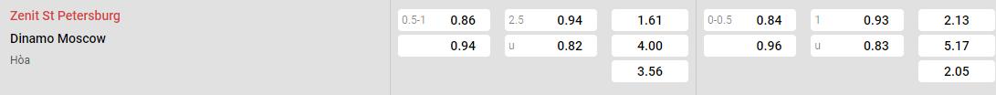 Soi kèo Châu Á Zenit vs Dinamo Moscow